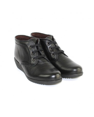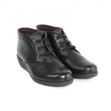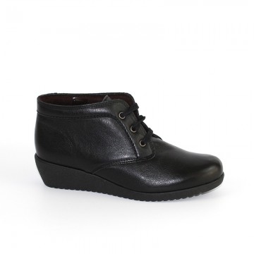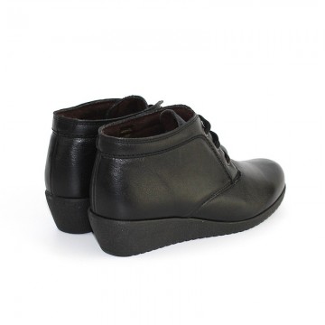 botín de cuña baja y cordones en piel negro
