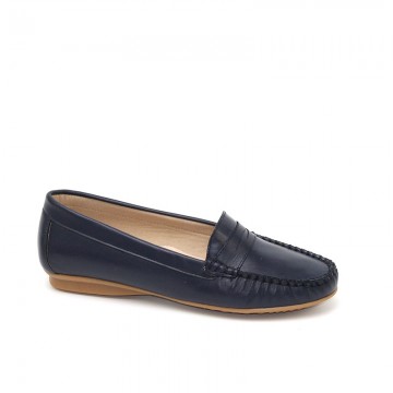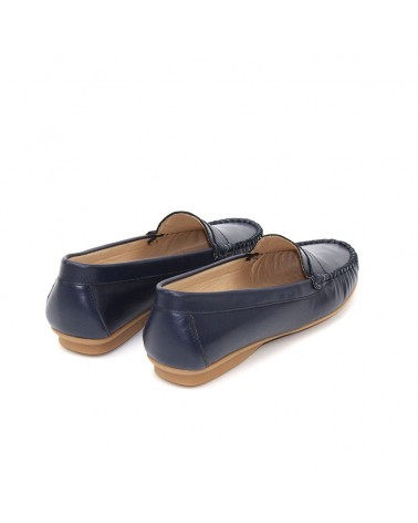 Mocasines en piel marino para mujer , fabricados con pieles de gran calidad. El detalle decorativo en la parte frontal del zapato hace, si cabe, aún más especial a este modelo. Modelo especialmente diseñado para mujeres con estilo , que priman el confort a lo largo del día.